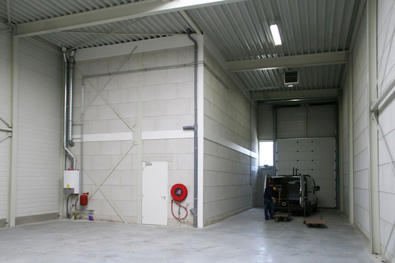 - elektrisch bediende overheaddeuren waarnaast een separate loopdeur (bedrijfshal 1 is voorzien van twee overheaddeuren)