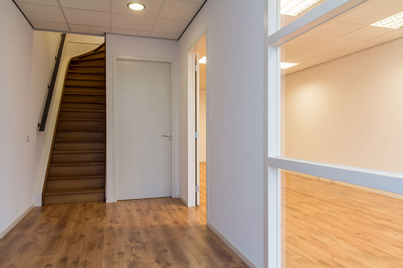 - compartimentering begane grond middels glazen- en metal-stud wand